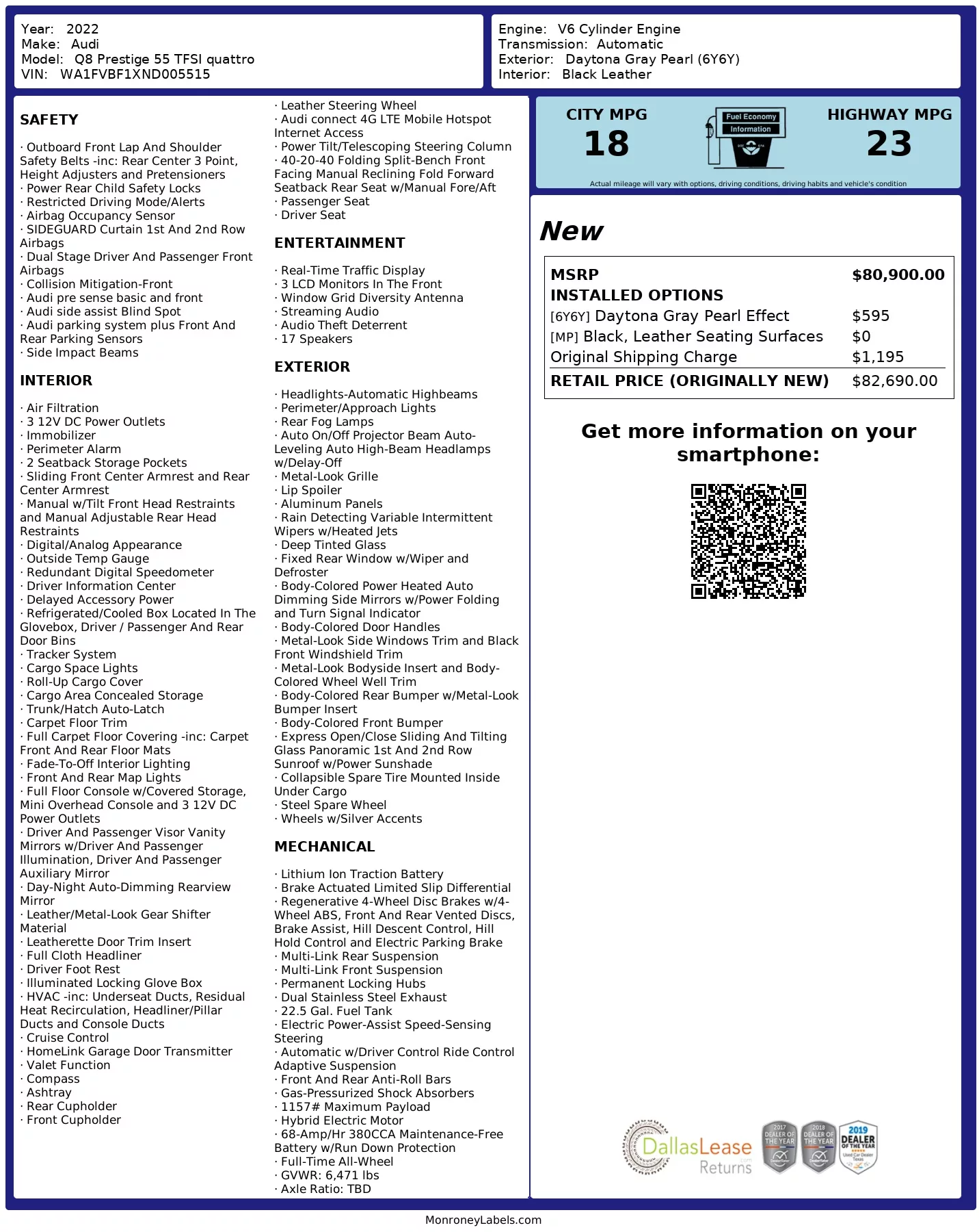 With only 33,572 miles and over $10,600 in factory options, this Q8 Prestige delivers a state-of-the-art luxury experience at a compelling value.