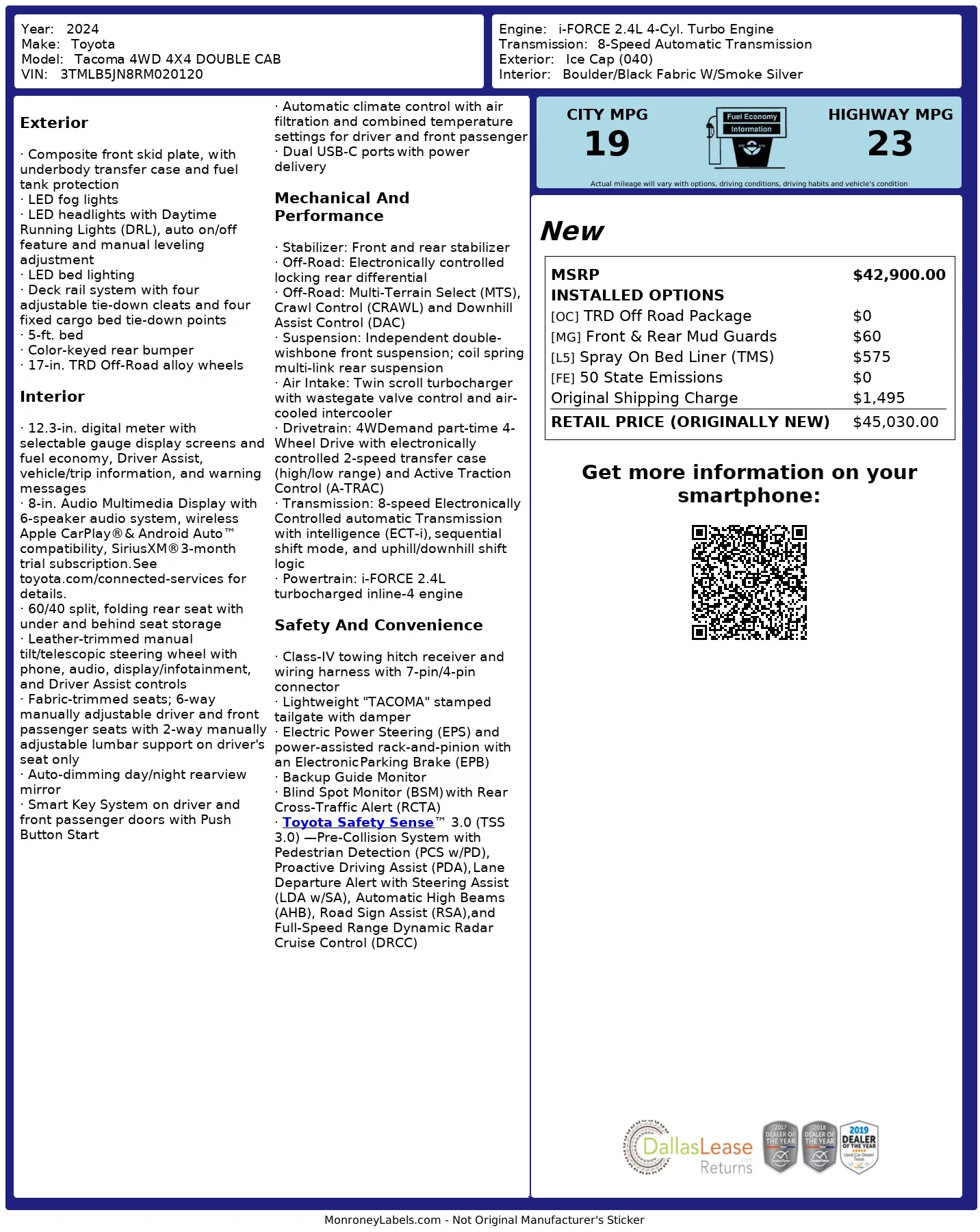 True Off-Road Readiness: Equipped with the purpose-built TRD Off-Road Package, 4WD, and a rugged spray-on bed liner for uncompromised durability.